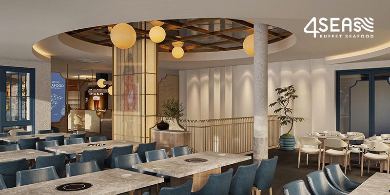 空間優雅 · 海味盛宴 4Seas 擁有寬敞現代的設計風格,兼具典雅與親和力,不僅是一處用餐空間,更是一段探索大海滋味的旅程。