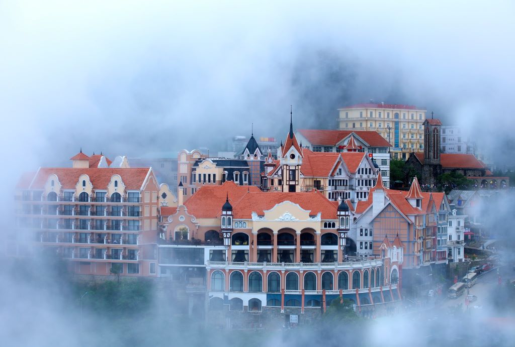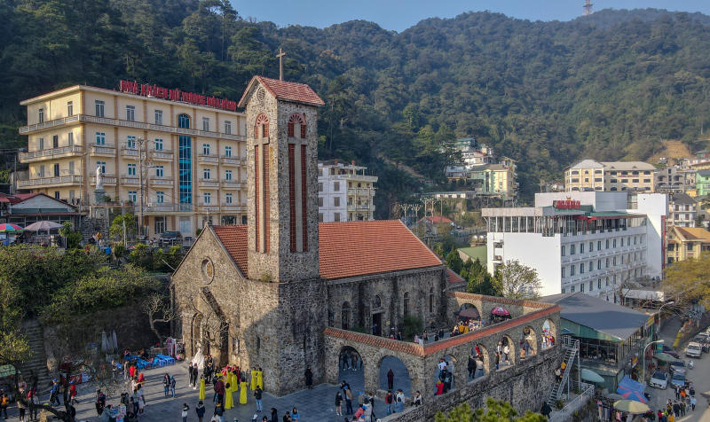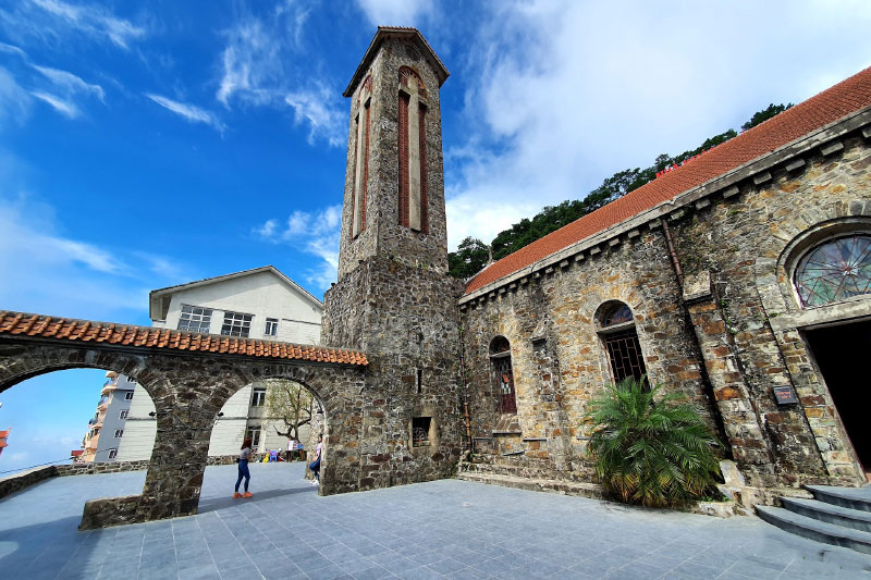 坐落在三島中心高地上的 石教堂 是整座山城的地標之一。建於 1906 年的法式教堂,以厚重的石牆與尖塔設計展現出古典浪漫的歐風氣息。走上教堂前的階梯,迎面是微涼山風與遼闊的雲海,這裡白天壯麗、夜晚夢幻,是情侶與攝影愛好者最喜歡的拍照地。站在教堂露臺上俯瞰整個三島小鎮,仿佛時間在此靜止,是 越南旅遊推薦 中最不可錯過的絕景之一。