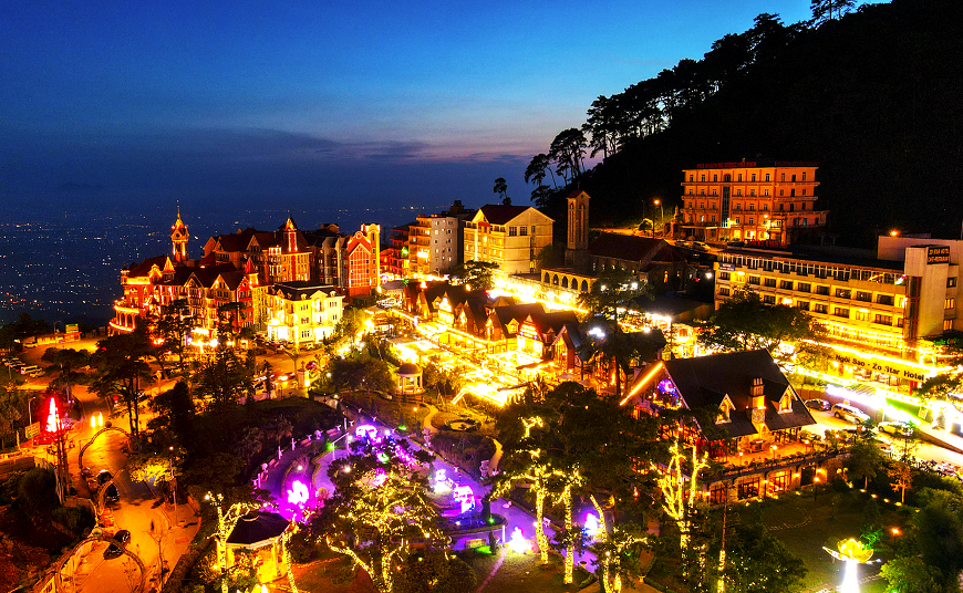 從三島中心廣場沿著坡道而上,便能抵達有名的「天空之門」。這裡是觀賞 雲海與日出 的最佳位置,每當清晨或午後,白霧繚繞在山谷之間,整座城市像漂浮在雲端。天空之門不僅是打卡熱點,更是讓人感受到「越南山林之美」的地方。站在高處俯瞰群山,空氣清新,遠方是層層綠意與陽光灑下的金色霧氣——浪漫又壯闊。