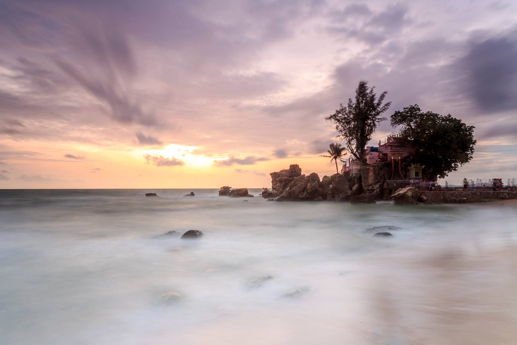 舅舅廟 Dinh Cậu Shrine為於富國島西北部的楊東鎮上,小廟建於三面環海的礁石上,建於1937年, 又稱為「小龍王廟」,是為了紀念海上女神而修建的。 「舅舅廟」是富國島當地祭祀海神非常有名的寺廟。(很類似台灣民間漁民出海捕魚祭祀媽祖的習慣) 在「舅舅廟」旁邊的「白色燈塔」則是作為出海人水路上的指引,當地人相信「舅舅廟」和「白色燈塔」 會庇佑著他們每次出海平安歸來。